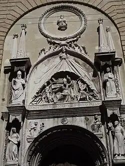 Dopo la morte dell'Orsini il portale venne completato da altri (Michele di Giovanni da Milano e da Giovanni Veneziano), che vi lavorarono dal 1493 al '94[1]; essi aggiunsero, rispetto al progetto originale, i due bassorilievi a grottesche poste ai lati del portale.