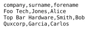 ") al fine di consentire l'utilizzo di caratteri speciali (utilizzati come separatori di campi); È buona prassi utilizzare tale convenzione per qualsiasi valore del campo e non solo all'occorrenza (molti interpreti potrebbero non essere in grado di leggere correttamente quest'ultimo caso); - le linee sono separate da un ritorno a capo (in alcuni sistemi è codificabile come