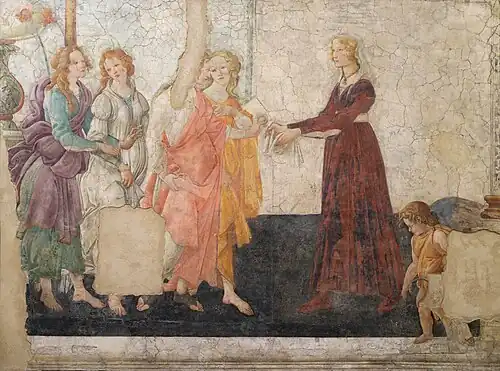 Botticelli divenne amico dei filosofi neoplatonici, ne accolse pienamente le idee e riuscì a rendere visibile quella bellezza da loro teorizzata, secondo la sua personale interpretazione dal carattere malinconico e contemplativo, che spesso non coincide con quella proposta da altri artisti legati a questo stesso ambiente culturale.