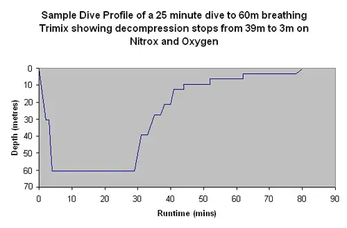 Quando ci si immerge con miscele a base d'azoto le tappe di decompressione si effettuano tipicamente tra i 3 e i 20 metri di profondità, con miscele a base d'elio tra i 20 e i 40 metri.