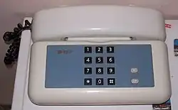 - ^ Si noti come il microtelefono (visibile a sinistra) e la base (visibile a destra) non siano collegati da nessun cavo telefonico. Nella foto non è presente il cavo telefonico che collega la base all'impianto telefonico (cavo telefonico che è presente in tutti i moderni telefoni fissi) e il cavo elettrico che collega la base alla rete elettrica (cavo elettrico che è presente in tutti i telefoni senza filo).