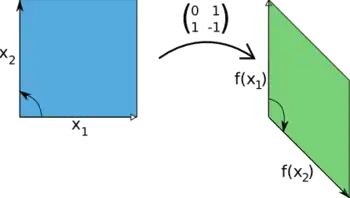 Questa trasformazione non è nient'altro che una rotazione antioraria di 90º con centro l'origine.