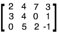 Le matrici sono utili in algebra lineare per rappresentare le applicazioni lineari. Questo viene fatto tramite la moltiplicazione riga per colonna. Ad esempio, la matrice descritta rappresenta una trasformazione del piano cartesiano in sé. Questa trasformazione manda il punto nel punto