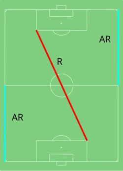 L'assistente numero uno opera dal lato delle panchine[2] ed è di solito il più esperto e anziano dei due[4], in quanto la collocazione è a una distanza molto ravvicinata rispetto alle panchine e alle aree tecniche in cui sono situati le riserve e i dirigenti sportivi delle squadre (nonché spesso delle tribune degli spettatori).