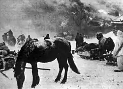 Durante l'ultima fase della ritirata ci furono fasi di disperazione, di caos e di cedimento morale. Gravi incidenti scoppiarono tra le truppe tedesche e quelle italiane, apparentemente per lo sprezzante, poco cameratesco comportamento dei soldati tedeschi e per violente liti riguardanti il diritto di usufruire dei pochissimi mezzi motorizzati disponibili; in realtà non mancarono episodi di rivalsa tra le truppe italiane anche con l'uso delle armi[125][126]. La stremata colonna guidata dalla "Tridentina", comunque, non era ancora uscita dalla sacca, e nella giornata del 25 dovette dapprima fronteggiare un attacco di partigiani e forze regolari russe a Nikitowka che venne respinto dal 5º battaglione alpini e dalle residue artiglierie tedesche e italiane, e successivamente, e alle prime luci del 26 gennaio dovette respingere duri attacchi nei pressi di Arnautowo con i battaglioni "Tirano" e "Val Camonica"[127]. Superata quest'ultima sacca, tutta la "Tridentina" si schierò per sfondare l'ultimo sbarramento sovietico a Nikolaevka: il 26 gennaio 1943 gli alpini e i rimanenti cannoni d'assalto tedeschi si scagliarono con le ultime energie contro l'ostacolo e, alla fine della sanguinosa battaglia di Nikolaevka riuscirono finalmente a rompere l'accerchiamento e a guadagnare la via verso Šebekino. La loro marcia però non finì qui: il comando di divisione fece ricostituire rapidamente i reparti e ordinò la ripresa della marcia all'alba del 27, che si concluse solo il 31 gennaio, quando gli alpini raggiunsero Triskoje non senza ulteriori perdite e grandi difficoltà[128]. Sorte peggiore toccò alle due divisioni "Cuneense", "Vicenza" e ai sopravvissuti della "Julia", che furono definitivamente intrappolate e costrette alla resa il 28 gennaio a Valujki dai reparti del 7º Corpo di cavalleria sovietico, giunto in quella località fin dal 19, a cui non seppero e non poterono opporre una efficace resistenza[129][130][131][132][N 6].
