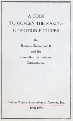 La Motion Picture Producers and Distributors of America (MPPDA, che sarebbe poi diventata la Motion Picture Association of America, o MPAA) adottò il codice nel 1930, iniziando però ad applicarlo effettivamente nel 1934, e lo abbandonò solo nel 1968 a favore del successivo MPAA film rating system.