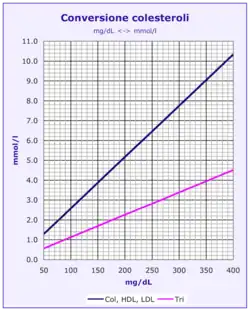Quando in medicina si parla di "colesterolo", non si intende il colesterolo inteso come sostanza chimica (si tratta di un'ambiguità semplificatoria), ma si parla delle lipoproteine plasmatiche che circolano nel sangue durante il digiuno: la relativa concentrazione si chiama colesterolemia. La colesterolemia viene distinta in colesterolemia totale, LDL, non-HDL (colesterolo totale - HDL) e HDL: livelli elevati dei primi tre parametri sono considerati dannosi per la salute, mentre alla colesterolemia HDL è attribuito un ruolo protettivo. Il colesterolo non-HDL include VLDL, lDL e LDL; in generale i livelli plasmatici del colesterolo non-HDL corrispondono al valore delle LDL + 30 mg/dL.[75]