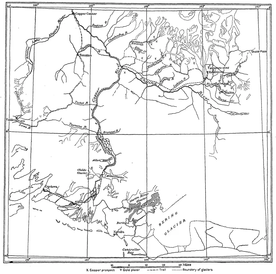 - ^ Walter Curran Mendenhall, Geology of the Central Copper River Region, Alaska Issue 41 of Geological Survey professional paper Geology of the Central Copper River Region, Alaska, Washington DC, US Government Printing Office, 1905, p. 20. URL consultato il 14 dicembre 2014.