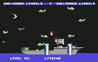 Uno o due giocatori in simultanea pilotano il proprio aereo da caccia a elica contro la flotta aerea del dottor Destructo, con l'obiettivo di distruggere la sua flotta navale e infine la sua fortezza su un'isola. Ogni livello consiste in una schermata fissa con visuale di profilo; buona parte della base dello schermo è occupata dall'obiettivo, una nave o un'installazione su un'isola, mentre nel cielo soprastante passano schiere interminabili di velivoli nemici di vario tipo. Uscendo da un bordo dello schermo si ricompare in quello opposto. L'aereo del giocatore può ruotare in tutte le direzioni, accelerare e sparare con munizioni illimitate contro i velivoli. Dispone inoltre di una sola bomba per livello per colpire l'obiettivo, ma la maggior parte degli attacchi contro di esso vengono fatti abbattendo i nemici: le loro carcasse in fiamme, infatti, se cadono sull'obiettivo lo danneggiano. I colpi inflitti scavano progressivamente dei buchi, che quando sono abbastanza profondi creano uno zampillo d'acqua. Raggiunto un certo numero di zampilli la nave affonda e il livello è superato. C'è un limite di tempo complessivo di 7 giorni, visibile dal passaggio alternato del sole e della luna sullo sfondo.