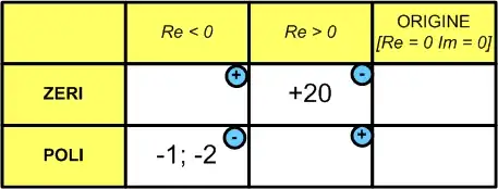 I poli e gli zeri sono tutti reali (non complessi) e non nell'origine. Si inseriscono questi valori in una tabella dove sono divisi i poli dagli zeri e quelli a parte reale positiva da quelli a parte reale negativa da quelli nell'origine.