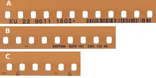 - Gli ultimi quattro numeri sono il numero di fotogramma, che avanza di uno ogni 16 fotogrammi in 35 mm e ogni 20 in 16 mm. I computer leggono i fotogrammi tra due fotogrammi chiave aggiungendo due cifre (indicate da trattini sulle perforazioni): "1802 + 01", "1802 + 02" e così via.