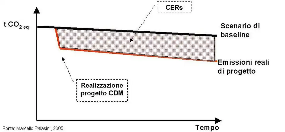 - La riduzione delle emissioni deve essere addizionale alla situazione che si avrebbe in assenza di tale progetto (scenario di riferimento - baseline), ovvero le emissioni reali dovute al progetto sono minori di quelle che si sarebbero avute in assenza del progetto stesso (criterio della addizionalità)