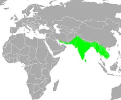 È presente nell'Africa subsahariana, nella fascia compresa tra il Senegal e la Valle del Nilo, nella penisola araba meridionale, nel subcontinente indiano e in Indocina.[2]