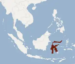 Questa specie è diffusa sull'Isola di Sulawesi e sulle isole di Malenge e Walea Kodi nelle Isole Togian.