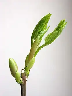 - gemme a legno (o vegetative), quando producono rami o foglie sul ramo. Generalmente di forma più appiattita e cilindrica quasi appuntita, nella quale si possono già intravedere i primordi delle foglie.