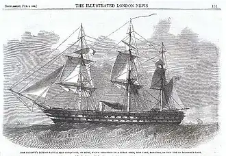 - ^ A causa delle forti correnti il Conqueror andò fuori rotta di 20 miglia.