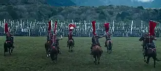 Nella scena finale, il doppiogiochista Hideyoshi, ottenuta la vittoria e l'approvazione degli altri generali, passa inutilmente in rassegna le teste dei nemici sconfitti alla ricerca di quella di Mitsuhide, senza rendersi conto di aver ritrovato proprio la testa di Oda Nobunaga, tanto agognata dal generale sconfitto.