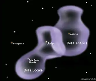 Molti astronomi credono che questo sistema di "bolle" si sia formato tra alcune centinaia di migliaia e pochi milioni di anni fa, a causa dell'esplosione di una supernova (il cui resto è probabilmente identificabile nella pulsar Geminga, nella costellazione dei Gemelli) che riscaldò la materia circostante, rendendola più rarefatta.