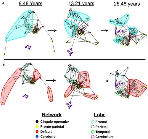 - ^ D. A. Fair, A. L. Cohen, N. U. F. Dosenbach, J. A. Church, F. M. Miezin, D. M. Barch, M. E. Raichle, S. E. Petersen e B. L. Schlaggar, The maturing architecture of the brain's default network, in Proceedings of the National Academy of Sciences, vol. 105, n. 10, 2008, pp. 4028-32, DOI:10.1073/pnas.0800376105, PMC 2268790, PMID 18322013.