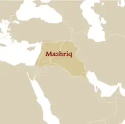 Si tratta della regione orientale del mondo arabo, in opposizione al Maghreb (in arabo ﻣﻐﺮﺏ? "(luogo del) tramonto", "Ponente") ed è sinonimo di Bilād al-Shām, ma comprende anche l'Iraq e Kuwait. Talvolta è utilizzato come sinonimo di "non-Maghreb" e in questi casi comprende Egitto, Sudan, e la penisola arabica. Il termine deriva dalla radice araba <sh-r-q>, che significa "est" o anche "luogo di levante".