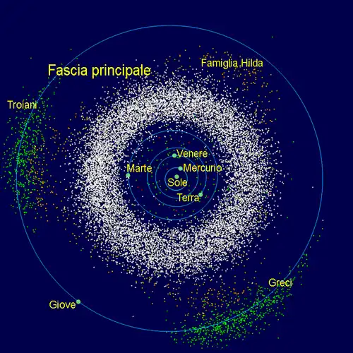 Costituzione delle famiglie degli asteroidi troiani e della fascia principale