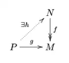 È possibile caratterizzare i moduli proiettivi anche attraverso una proprietà di sollevamento: P è un modulo proiettivo se e solo se per ogni omomorfismo suriettivo di A-moduli sinistri f : N → M e per ogni omomorfismo g : P → M esiste un omomorfismo di moduli h : P → N tale che hf = g, cioè tale da far commutare il seguente diagramma: