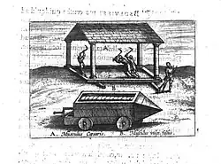 - disponeva di una copertura multistrato per prevenirne la distruzione ad opera di pesanti proiettili o del fuoco. La tettoia, a doppio spiovente, era infatti coperta di mattoni e sassi cementati con della malta, poi celati da pieghe di cuoio a loro volta superiormente coperte da dei materassi[6];