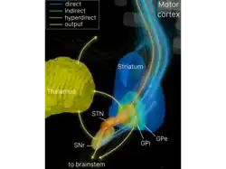 - ^ a b I. Silkis, The cortico-basal ganglia-thalamocortical circuit with synaptic plasticity. II. Mechanism of synergistic modulation of thalamic activity via the direct and indirect pathways through the basal ganglia, in Bio Systems, vol. 59, n. 1, 1º gennaio 2001, pp. 7-14, DOI:10.1016/s0303-2647(00)00135-0, ISSN 0303-2647, PMID 11226622.