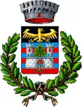 - ^ Fasciato d'oro e di rosso, al castello merlato alla guelfa d’argento, attraversante sul tutto, aperto e finestrato dei campi, con un pero sradicato di verde, penetrante dalla porta e uscente fra i suoi due torrioni, la chioma fruttifera di cinque pere mature al naturale e disposte in croce di Sant'Andrea; al capo d'oro, con l’aquila di nero (dell’Impero). Cfr Stemmario Marco Cremosano, 1673, vol. II, p. 241.