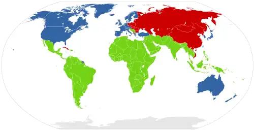 Dopo la seconda guerra mondiale, la NATO e il Patto di Varsavia erano i due maggiori blocchi contrapposti, designati spesso come blocco occidentale e blocco orientale, anche se i due mondi non erano numerati. Un gran numero di Paesi non apparteneva a nessuna di queste due categorie, pertanto negli anni cinquanta questi Stati furono chiamati terzo mondo o Paesi non allineati.