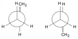 Il legame tra l'atomo di carbonio in stato di ibridazione sp3 e l'atomo di carbonio in sp2 è un legame semplice di tipo sigma, ed è quindi in grado di ruotare sul proprio asse.[16] Ciò determina il fatto che tale sostanza si può presentare in diversi isomeri conformazionali, in particolare nei due rotameri eclissato e sfalsato.