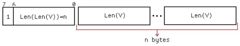 Questo è il caso più semplice. V è codificato in meno di 127 bytes ed L contiene esclusivamente il valore di Len(V) in esadecimale.