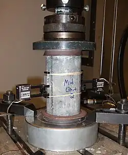 La compressione indica nella meccanica uno degli sforzi elementari monoassiali normali alla superficie di riferimento al quale può essere sottoposto un corpo (insieme alla trazione, la flessione, il taglio e la torsione); si misura in MPa.