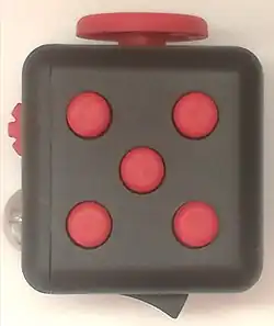 Il Fidget Cube è un piccolo giocattolo portatile anti-stress. Su tutti i suoi lati vi sono varie caratteristiche: un interruttore, tre ingranaggi, una palla metallica rotolante, un piccolo joystick di plastica, un disco rotante, una parte concava simile alle pietre anti-preoccupazione e cinque pulsanti. Il cubo ha lo scopo stimolare i sensi e fornire un modo semplice per stimolare il tatto e gli altri sensi. Il Fidget Cube è diventato noto nel 2016 in seguito a una campagna sulla piattaforma statunitense di crowdfunding Kickstarter.