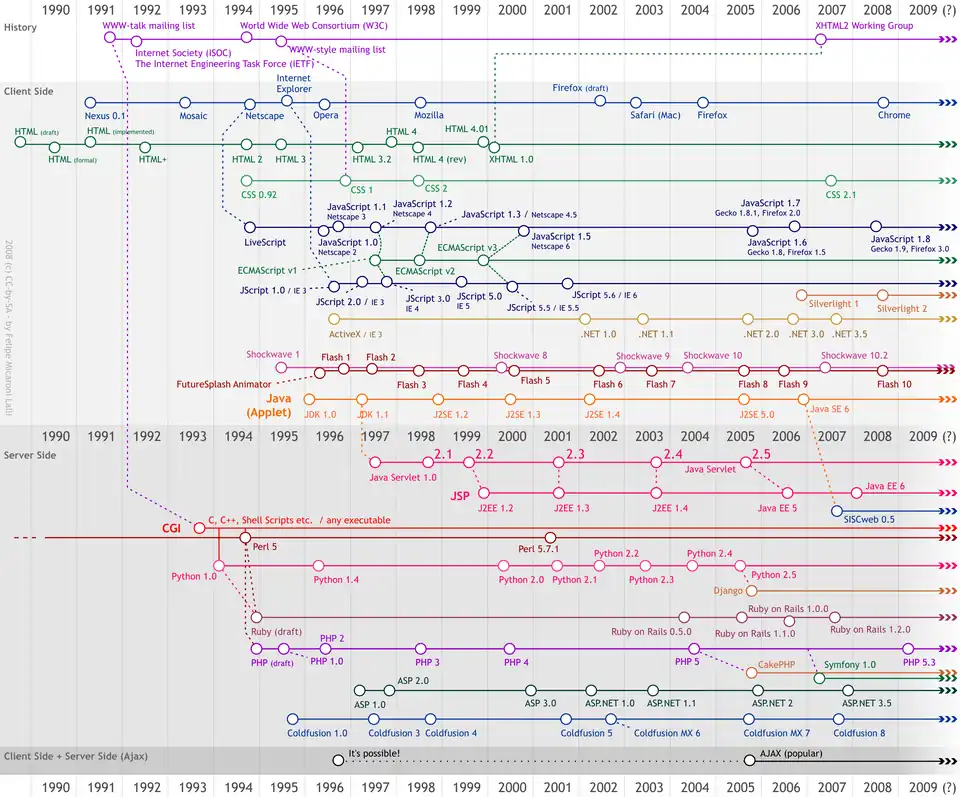 Dalla metà degli anni 1990, quella della programmazione Web è stata una delle industrie nel mondo che si è sviluppata più velocemente: nel 1995 c'erano meno di 1.000 compagnie nel settore solo negli Stati Uniti, ma dal 2005 erano già oltre 30.000 avendo avuto un forte sviluppo negli anni 2000 con l'avvento del Web 2.0 e la diffusione di applicazioni Web[3].