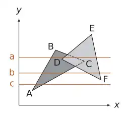 - Ordinare tali intersezioni secondo l'asse x