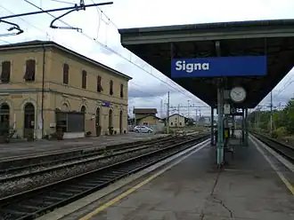 La stazione di Signa è situata sulla linea ferroviaria Leopolda e dista dalle principali stazioni di Firenze ed Empoli circa 15 km per entrambe. Su iniziativa della Regione Toscana e delle Ferrovie dello Stato, dal 2006 è stato attivato il servizio di Memorario, aumentando la percorrenza dei treni diretti verso le stazioni principali della zona. In media la percorrenza di un treno tra Signa e Firenze o Empoli dura circa 20 minuti, salvo ritardi o altri problemi tecnici.