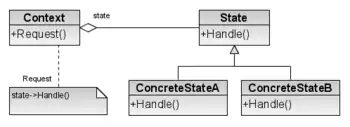 - Context: Definisce la classe del client e mantiene un riferimento ad un ConcreteState.