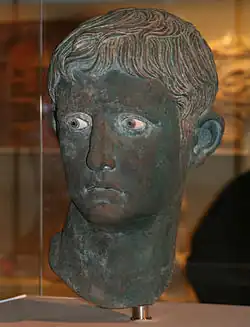 Cesare Augusto (in latino Caesar Augustus; Roma, 23 settembre 63 a.C. – Nola, 19 agosto 14), nato con il nome di Gaio Ottavio (Gaius Octavius) con in seguito aggiunto l'agnomen Turino (Thurinus)[33] e conosciuto anche come Ottaviano e/o solo Augusto, è generalmente riconosciuto come il fondatore dell'Impero romano e primo imperatore di esso, per 41 anni, dal 27 a.C. al 14 d.C.