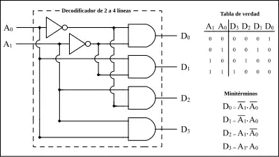 Esso è un circuito combinatorio che converte un codice binario (naturale, BCD, ecc.) di n bit in ingresso e m linee di uscita, in modo che ogni linea di uscita sia attivata per una sola delle possibili combinazioni di ingresso. In genere, questi circuiti si trovano spesso come demultiplexer, in quanto questi ultimi possono comportarsi come un decoder.
