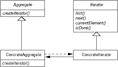 Per permettere di visitare qualunque aggregato di elementi di un tipo concreto, indipendentemente dall'iteratore specifico e dal contenitore ad esso associato, il pattern Iterator richiede la definizione di due interfacce: